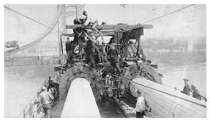 In October 1927, the Hudson River, playground of Bill’s youth, was the site of one of New York’s greatest projects; Under the direction of Swiss-born architect and engineer Othmar Ammann, The Port Authority began construction of a gigantic bridge linking New York and New Jersey. This bridge would be called the Washington bridge. For Bill White it was an extraordinary opportunity to return to the river he loved, so he joined the construction team. After swimming across this powerful stream so many times, he would now be among the first to see it from above. Ammann's design, bold and foresighted, was an engineering tour de force, with an extraordinary 3,500-foot center span suspended between two 570' steel towers. It would have the capacity and strength to add a railroad or a second roadway with an additional six lanes. Twice as long as the longest suspension bridge ever built, it was the marvel of its time and, to some, it will always be the noblest of all bridges.